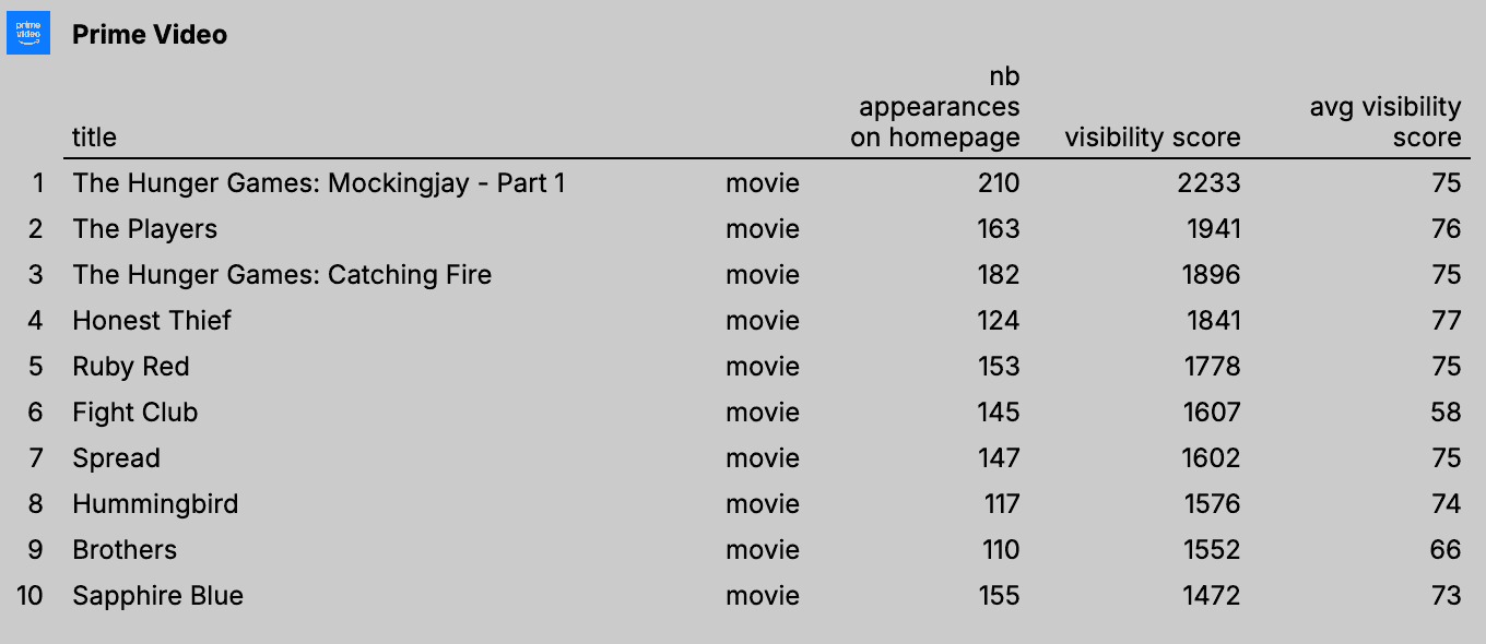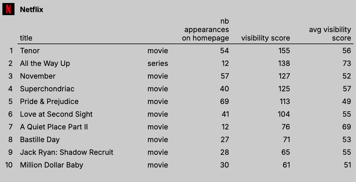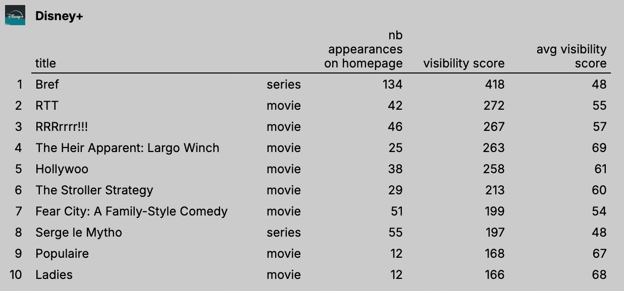 Pour voir les 10 titres les plus mis en avant de chaque catalogue → Google Sheets.