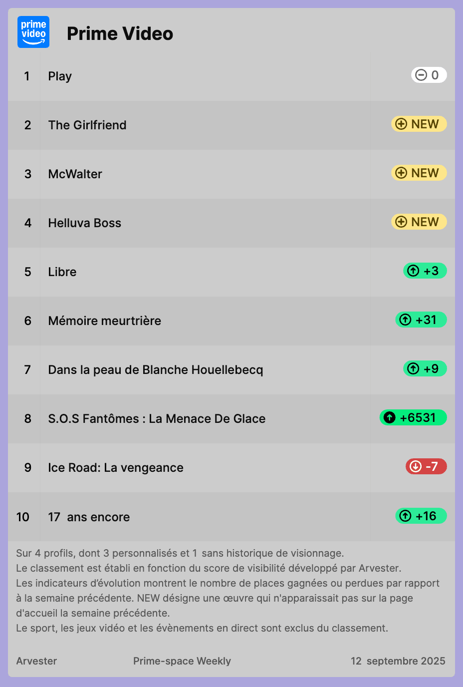 Prime-space Weekly du 12 septembre 2025