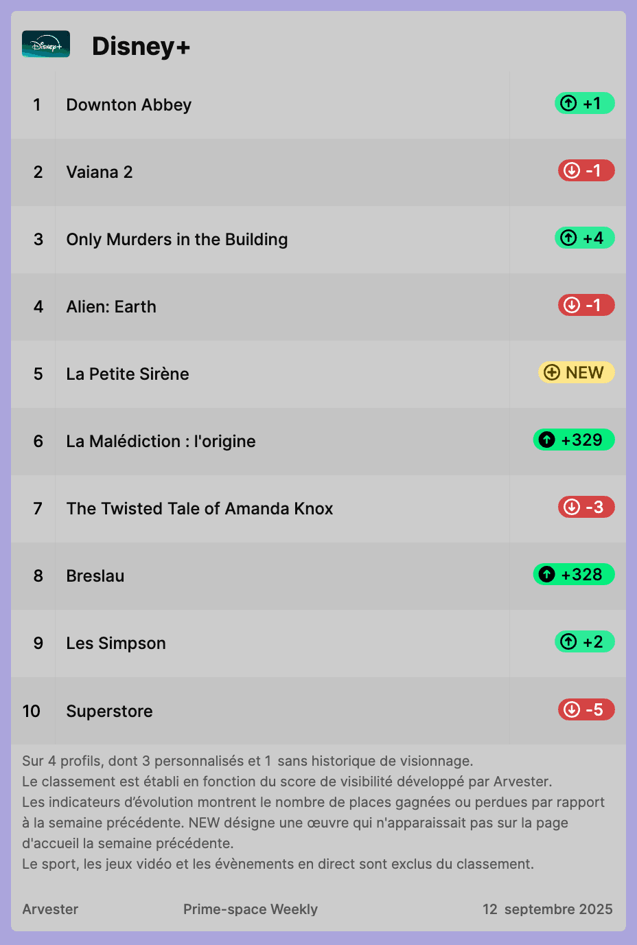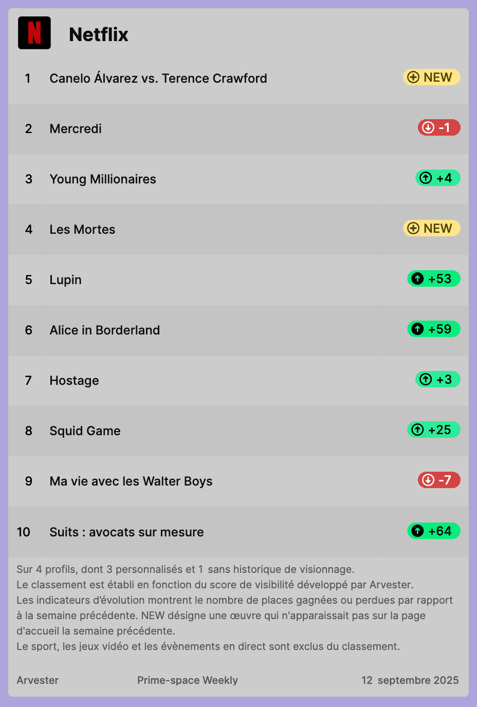 Notre classement hebdomadaire des titres les plus visibles sur Netflix, Prime Video et Disney+