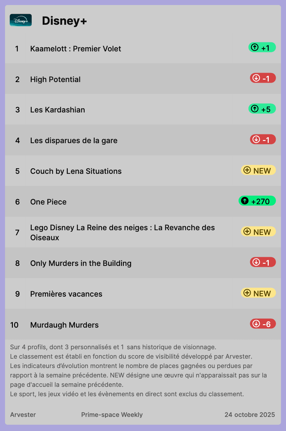 Notre classement hebdomadaire des titres les plus visibles sur Netflix, Prime Video et Disney+