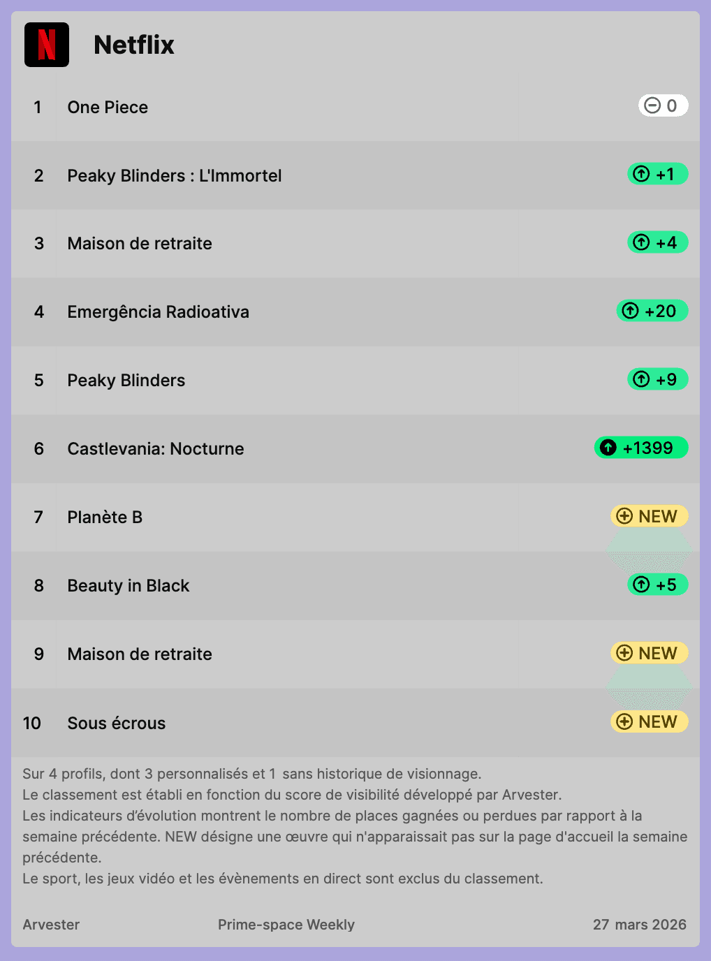 Notre classement hebdomadaire des titres les plus visibles sur Netflix, Prime Video et Disney+