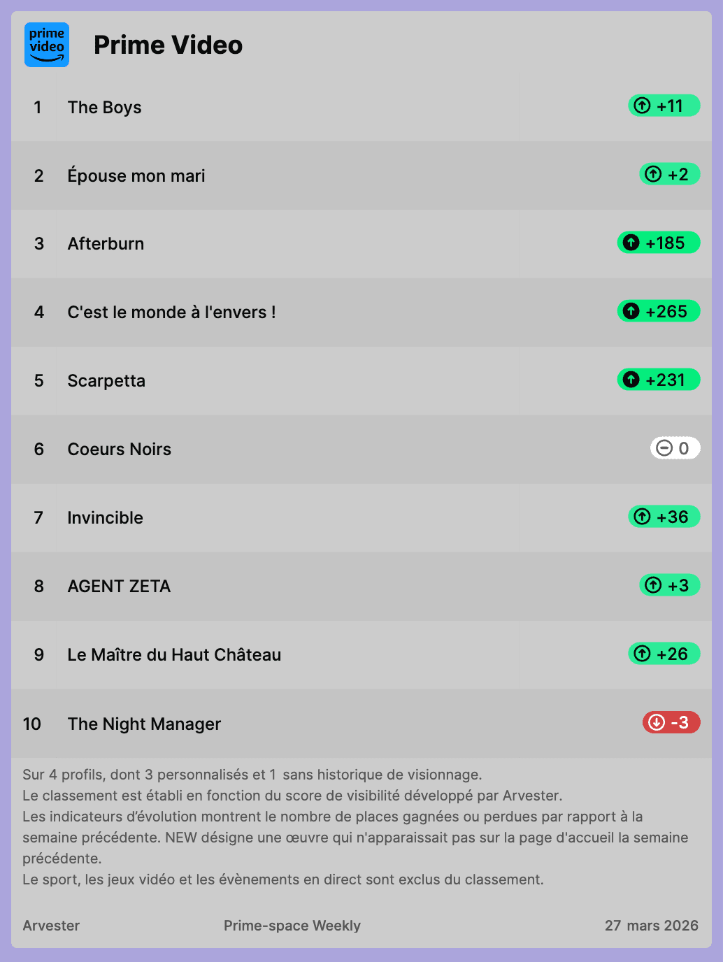 Prime-space Weekly du 27 mars 2026
