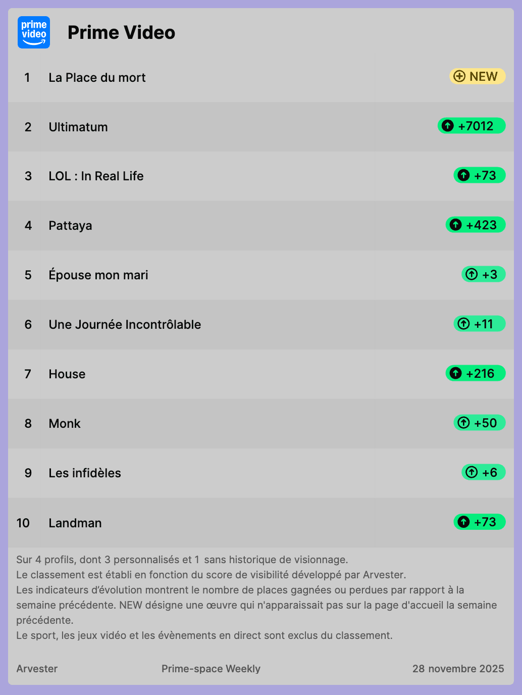 Prime-space Weekly du 28 Novembre 2025