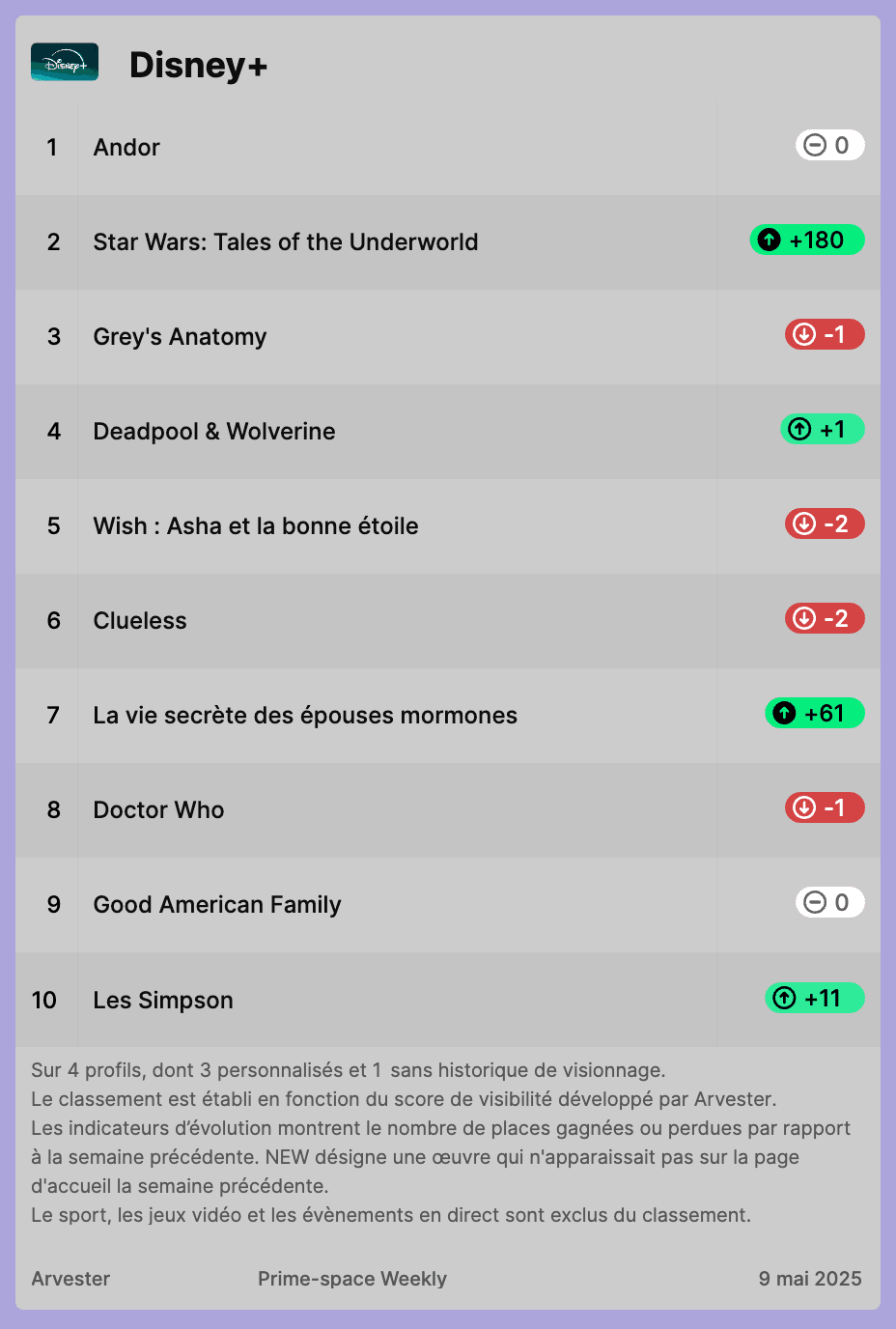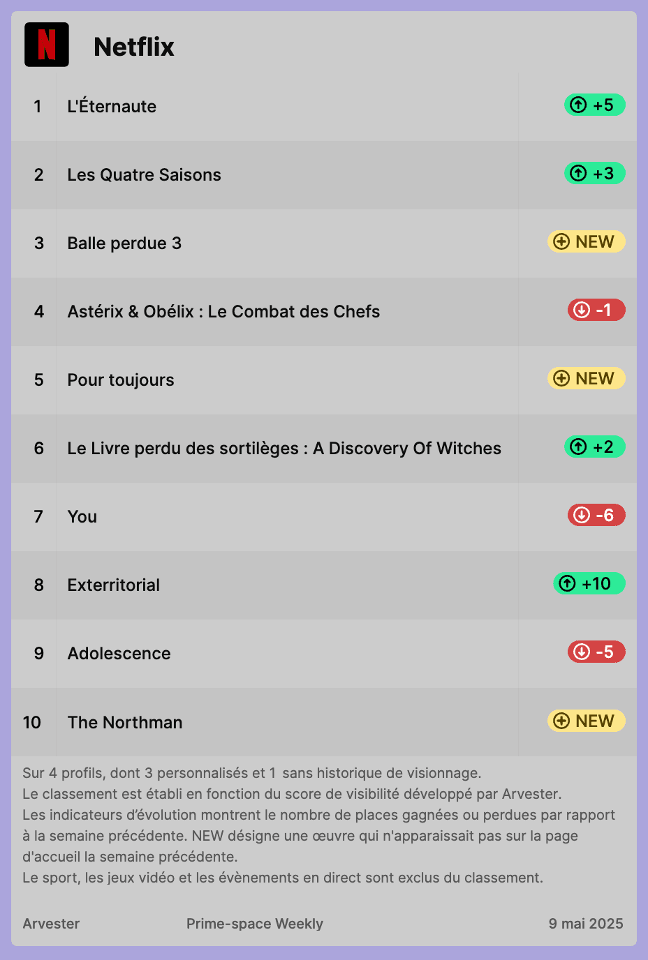Notre classement hebdomadaire des titres les plus visibles sur Netflix, Prime Video et Disney+