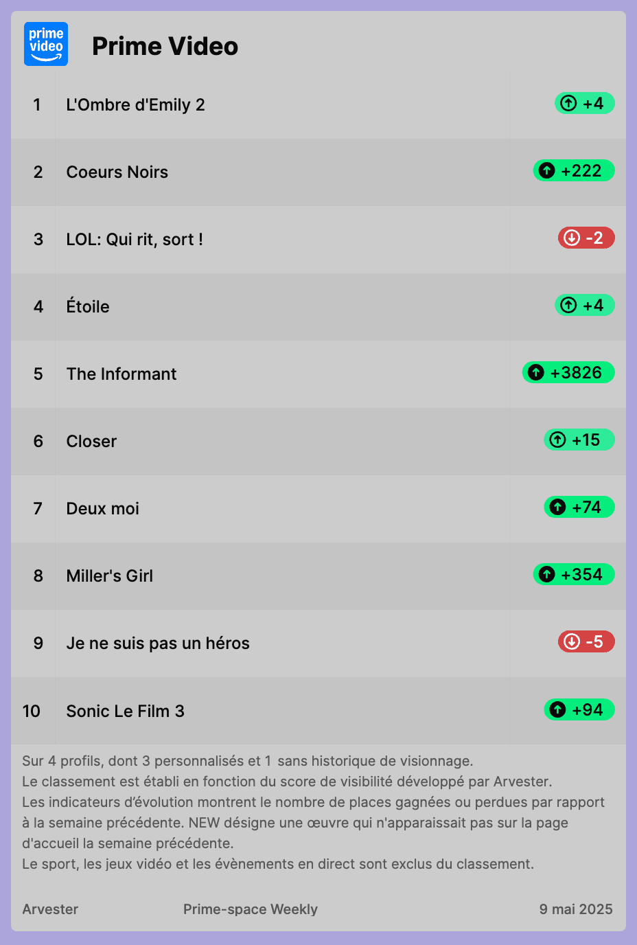 Prime-space Weekly du 9 mai 2025